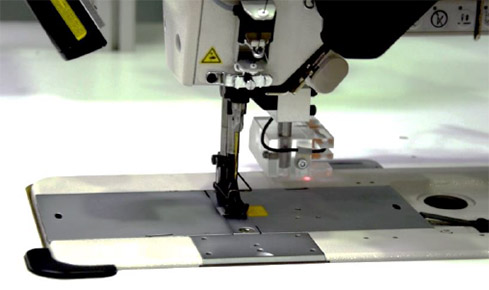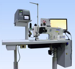 This sewing station allows for activity logs to ensure the specification of the materials involved in the sewing process are fully correct and documented. Sensors log which thread is needed for a particular product and will only allow sewing once it is confirmed. The use of these sensors allows for incorrect components to be highlighted to the operator. Sensors mounted throughout the machine allow for accurate monitoring of the most important perimeters: thread, tension, bobbin/winding/ needle thread, seam lengths, type of material and the position of the stitches.