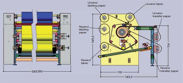 The Transmatic 7460/7472 SPORTS has been specially designed for digital printing on cutted pieces and placed prints. This application is indicated especially in the field of printing of sport shirts. A new system of heating oil ensures a uniform temperature distribution over the entire length of the cylinder with a minimum consumption of energy. The heating systems oil Transmatic consume 50% less energy of electric machines. The diameter of the drum 35 cm/ 13.8 ” is suitable to the needs of digital printing.