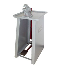 Manual Machine suitable for the application of multiple types of hinges and clips of leather goods such as belts, bags, wallets, etc.. Consists of a pair of blocks suitable for the pressing of the details, the SC5 is used simply by pressing a pedal, whose range is adaptable according to the needs of the operator. An adjustable mechanical stop determines the extent of closing, in order to be pressed in the same way all the accessories.