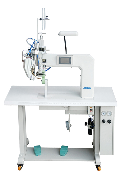Hot-Air-Taping bonding machine for continuous seam-sealing of waterproof, water-resistant and breathable materials. Perfectly suited to the production of outdoor-garments, clothing for military and public authorities, protective clothing, tents and awnings as well as seam preparation for foam padded automobile seats or side rests.