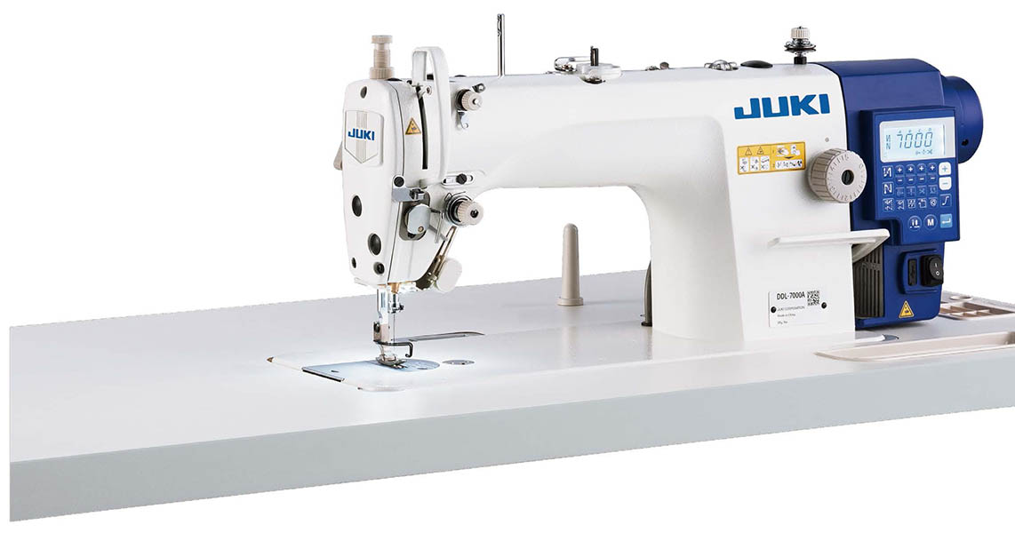 Industrial sewing machine Juki DDL-7000A is Direct drive, 1-needle, Lockstitch machine with automatic thread trimmer. The thread take-up lever which provides a wider sewing range is adopted.Needle bar stroke is 35 mm,With this feature, the sewing machine is able to sew many different types of materials ranging from light-weight ones to medium-weight denim.