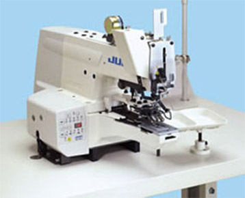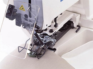 Computer-controlled, dry-head high-speed single thread chainstitch button sewing machine, that supports many different button sewing specifications independently. The machine is able to do undependtly sew various stiching shapes such as U shaped stiching, X shaped stiching and Z shaped stiching. The machine has 55 different stitching patterns as standard.