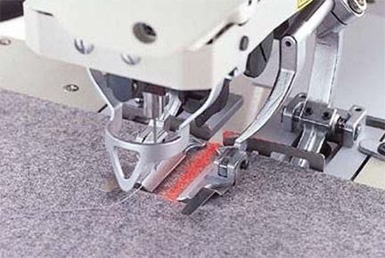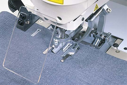 The multi-cutting device incorporates a separate cloth cutting knife with two sections of blade - one intended for the eyelet sections of buttonholes and one intended for straight sections. By dropping the knife two or more times per cycle, the machine can sew buttonholes of various sizes without changing the knife guard. Available also in versions for lateral and longitudinal buttonholing, for yeans, for cotton pants and working wear and for trousers.