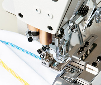 High-speed cylinder-bed top and bottom coverstitch machine. The machine can be used for the hemming process of the sleeves and bottoms of T-shirts and for the covering process for sportswear and knitwear.