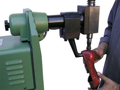 This machine is particularly suitable to beat and iron the stitching and close the cut of the lining after trimming on finished shoe. The machine is equipped with a heating system of the anvil-foot (on request of the hammer too) to regulate the temperature by thermostat.
