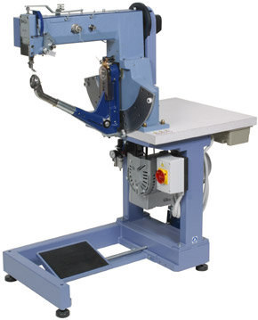 High output rotary hook action stitching to sew up to 10 pairs of shoes without changing the bobbin. Double feeding: foot and needle ensure a constant length of the stitch. The floating horn supports the hook, and has a special profile to make sewing around the toe and heel areas easy, even on closed ankle boots. Programmable electronic motor. Pneumatic lifting of the foot. The machine is very easily to be used by female operators. Possibility to change the horn with 87 LSP.