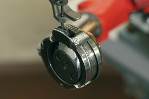 To stitch shoes and ankle boots with box soles and leather goods. New techcnology: Triple feeding device with integrated claw, new patent Elecctromechanical movment of the horn Elecctromechanical movment of the horn.