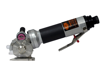 The cutting part has also been wholly reassessed : a reinforced structure and bronze/steel gear coupling create a high torque which allows the use of this pneumatic cutting tool not only in textile field but also in technical fabrics or leather fields. The max cutting thickness is now 9mm and the new push button sharpening stone allows the sharpening of the knife edge to be done in less than 10 seconds without removing the knife. The new stong and slim shaped foot allows to trim curved sections very easily. The new model FP503 is truly a novel concentration of power and lightness (it weights only 800 grams) in thefield of professional cutting tool.