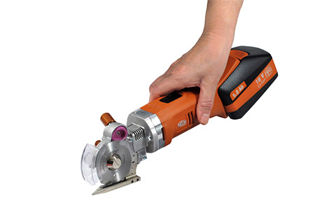 Zero702 is the newly born model at Rasor. The first hand-held battery driven cutting tool for professional and stepless production process. It is made as combination of the cutting body of the already approved OPTIMA 702 and the innovative and modern battery driven motor. It weighs only 1900 grams (battery included) and develop a power of 400Watt which combined with a bronze/steel coupling gear develop an impressive cutting power. Zero702 is able to cut any kind of material at the "soft" stage up to a maximun thickness of 18mm. This is why this model is widely applied in textile, technical fabrics or composite material fields. The high torque allows to cut even rubber materials and plastic base materials in the fields of carpets or floorings.