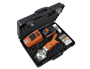 The speed of the knife is adjustable electronically from 600 RPM to 1000 RPM in order to be suitable to cut any kind of material. The foot is steel made, strong and miniatured so to allow to trim straight or curved portions very easily and precisely. The push button sharpening stone allows the sharpening of the knife edge to be done in less than 10 seconds without removing the knife. The new rear fixed knife protection is now transparent plastic made to give more visibility during the cut operations. The battery of latest generation is lithium ions technology so to be able to develop 5 Ah. It has an extraordinary life and it is possible to see the charging rate through a LED lamp. Through the standard charger the battery can be re-charged in 55 minutes while through the fast charger (option) battery can be re-charged in 30 minutes only. All these features make ZERO702 the battery hand-held cutting tool more revolutionary and powerfull on the market able to satisfy any need in field of professional cutting tools.
