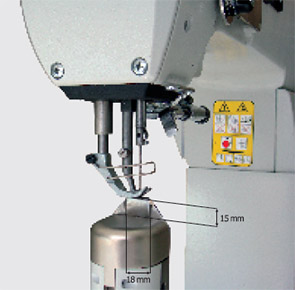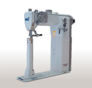 Visoka stubna mašina za šivenje, sa visinom stuba od 42cm, trostrukim transportom, velikim grejferom, sa pozicioniranjem igle, pneumatskim podizanjem stopice. U kompletu sa podrškom, stolom i elektronskim motorom Efka DC1550.