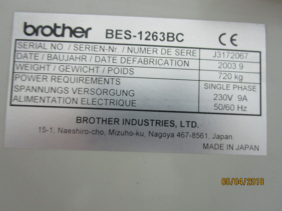 Brother BES-1263 BC OPIS Mašina za vez Brother BES-1263 BC. KARAKTERISTIKE Tip: BES-1263 BC 6 glava / 12 igala Godina proizvodnje: 2003 Polovna VIŠE INFORMACIJA Pošaljite upit
