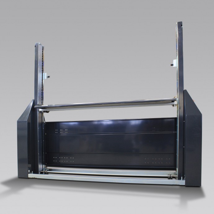 Fast and smooth on its movements, the elevator is ideal for time saving during the roll change. Intuitive and clear operator panel for its easy handling. The safety system ensures automatic stop of the platform in presence of obstacles. The loading system and the manual or motorized transfer table on rails can be moved together with the addition of an optional joint-kit and of guide rails to be installed on the floor. Combinable with all Caron spreaders.