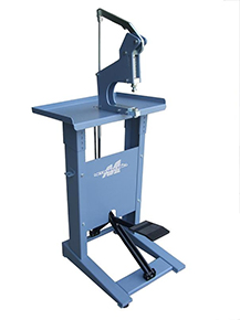Pedalni aplikator za obroče, kljuke, itd. Delovna globina 160 mm. Klop je nastavljiva po višini. Opcijsko: plošča za nosilec klišeja. Na voljo tudi model G100/L z delovno globino 250mm.
