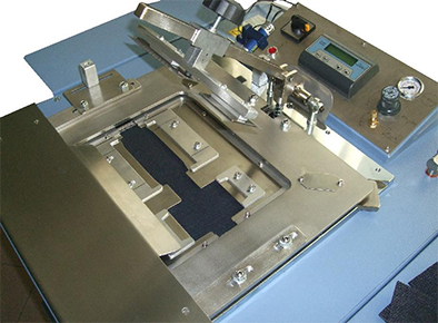 Parni likalni stroj posebej za likanje robov kvadratnih ali pravokotnih etiket iz tkanine. Kvadratna ali pravokotna oblika po risbi prikaže zloženo tkanino ki štrli in je z likalnikom v dveh korakih čista. Priložen notranji sistem izparevanja. Na voljo tudi v različici UNIVAPOR/E-VE za priklop na parni kotel.