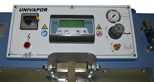 Univerzalni parni zgibalni stroj za likanje robov žepov, zavihkov srajc, zaplat, itd, ki so na to zašiti na oblačila. Vsestranski in cenovno ugoden stroj, ki je standardno opremljen z univerzalnimi žepnimi čeljustmi za pritisk žepov vseh vrst in velikosti. Štiri strani lahko likamo z zamenjavo univerzalnih žepnih čeljusti. Standardno je opremljen s sistemom za takojšnjo proizvodnjo pare, nastavljivo temperaturo pritiska, časa pritiska. Na voljo v različici UNIVAPOR-VE za priklop na zunanji parni kotel.