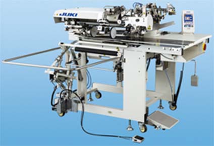 Lockstitch avtomatski stroj za šivanje obrob. Stroj podpira šivanje ravnih žepov (z zavihki) na oblekah, jaknah in hlačah. Izbiranje med dvojnim/enojnim šivanjem obrob enostavno določimo s pritiskom na gumb na kontrolni plošči.