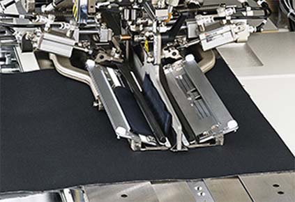Lockstitch avtomatski stroj za šivanje obrob. Stroj podpira šivanje ravnih žepov (z zavihki) na oblekah, jaknah in hlačah. Izbiranje med dvojnim/enojnim šivanjem obrob enostavno določimo s pritiskom na gumb na kontrolni plošči.