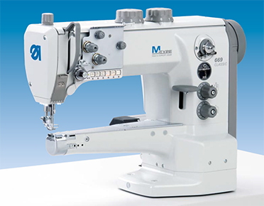 Enoigelni, lockstitch šivalni stroj za univerzalno uporabo. Šivalne funkcije v oddaljenosti 1mm na desni strani igle z vrtljivim robnim vodilom. Šivanje cilindričnih produktov v skladu z najvišjimi zahtevami ter učinkovitostjo. Podskupine novega razreda M-TYPE 669 z ozkim vratom omogočajo profesionalno realizacijo težjih šivalnih procesov kot so na primer sestavljanje, paspuliranje, dekorativno šivanje manjših usnjenih izdelkov ter cilindričnih izdelkov.