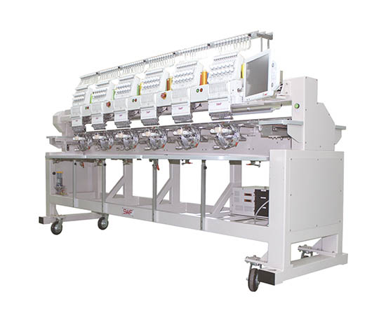 Our SWF KE-Series SWF Multi Head embroidery machines are the most advanced engineered machines on the market. The SWF KE Series comes packed with innovative features, increased running speed, developed to producing flawless designs with up to 1000 stitches per minute with large 15″ touch screen, self oiling and a machine body that’s designed to last with the largest tubular compact stitching field available of 319 x 439mm.