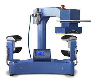 Pnevmatska transfer preša z vrtljivo glavo, ki omogoča večjo produktivnost. Dvojna postaja pomaga prenašati in pripraviti drugo oblačilo medtem, ko stiskamo prvo. Elektronska nastavitev časa in temperature. Avtomatski sistem za blokiranje vseh vrst kap.