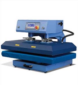 Pol avtomatska transfer preša z močnim pritiskom. Elektronska ter digitalna nastavitev časa in temperature ter opozorilo pred morebitnimi napakami. Števec kosov, nomex pokrov.