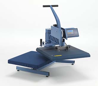 Ročna transfer preša s stranskim odpiranjem. Zgornja plošča ni pritrjena na tog način ampak se samodejno prilagodi, da zagotovi enoten pritisk med obema ploščama. Digitaln nastavitev časa in temperature. Spodnja plošča je zamenljiva. Primerno za vse vrste aplikacij. Opcijsko dodatek za kape.